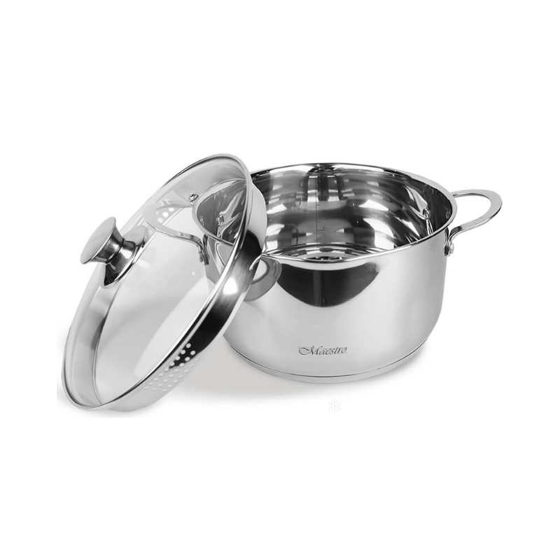 Kompaktiškas ir funkcionalus Maestro MR-3510-16 yra nedidelis puodas, idealiai tinkantis padažams, košėms, nedidelėms sriubos porcijoms ar kiaušiniams virti. Pagamintas iš aukščiausios kokybės nerūdijančio plieno, jis užtikrina ilgaamžiškumą ir puikų šilumos paskirstymą. Dėl daugiasluoksnio šilumą akumuliuojančio dugno, šis puodas greitai įkaista ir taupo energiją. Komplekte esantis stiklinis dangtis turi specialų kraštą su angomis patogiam vandens nupylimui bei garų išleidimui.