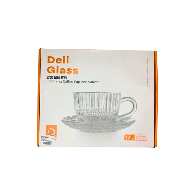 Elegantiškas 12 dalių stiklo rinkinys, kurį sudaro 6 stiklinės ir 6 lėkštutės, puikiai tinka kavos, arbatos ar desertų patiekimui. Skaidrus stiklas su subtiliu auksiniu krašteliu suteikia prabangos ir stiliaus, todėl rinkinys tinka tiek kasdieniam naudojimui, tiek iškilmingoms progoms. Stiklinės ir lėkštutės supakuotos saugiai bei tvarkingai – idealiai tinka ir dovanai.
