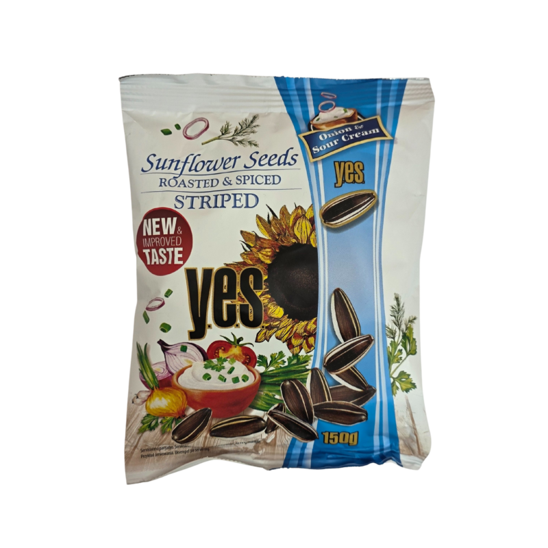Saulėgrąžų sėklos. Kepintos saulėgrąžų sėklos,valgomoji druska 2%, prieskonių mišinys 1,9%, dekstrozė,cukraus pudra,džiovintos dažovės 0,1% (svogūnų ir česnakų milteliai), PIENO milteliai0,1%, kvapiosios medžiagos, rūgštingumą reguliuojanti medžiaga citrinų rūgštis,maltodektrinas iš kukurūzų.