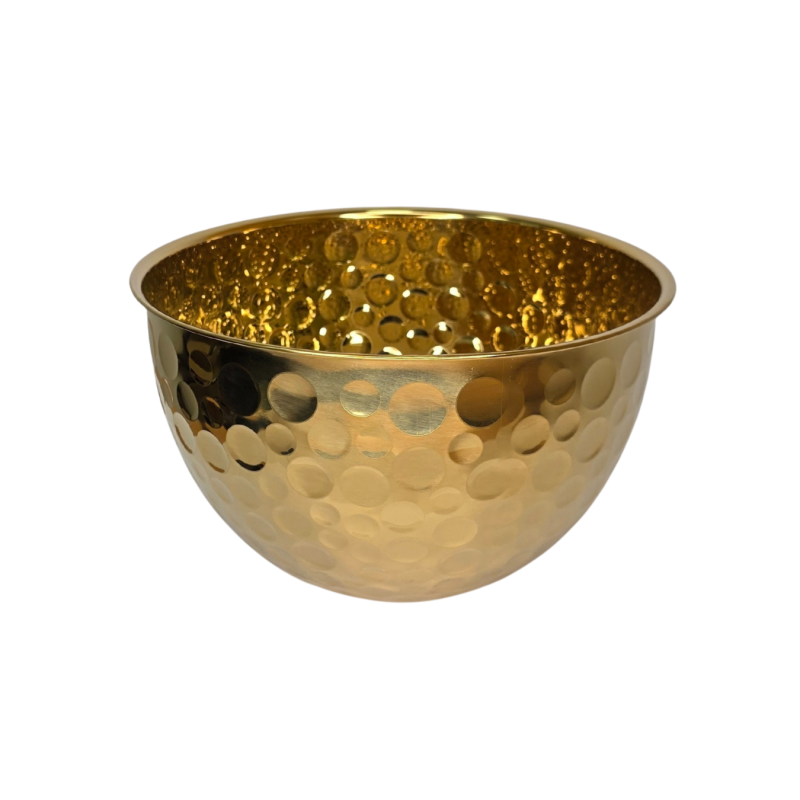 Stilinga ir elegantiška metalinė dubenėlis su išraiškinga faktūra – puikus pasirinkimas tiek moderniam, tiek klasikiniam interjerui. Blizgi auksinė spalva suteikia prabangos įspūdį, todėl šis dubenėlis ne tik praktiška, bet ir tampa dekoratyvine stalo detale.