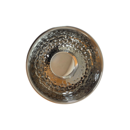 Stilingas ir tvirtas metalinis dubuo su dekoratyviniu, plaktos tekstūros paviršiumi. Pagamintas iš metalo, atsparus kasdieniam naudojimui ir lengvai prižiūrimas. 24 cm skersmens dubuo puikiai tinka salotoms, vaisiams, užkandžiams ar serviravimui. Elegantiškas dizainas dera tiek moderniame, tiek klasikiniame interjere.