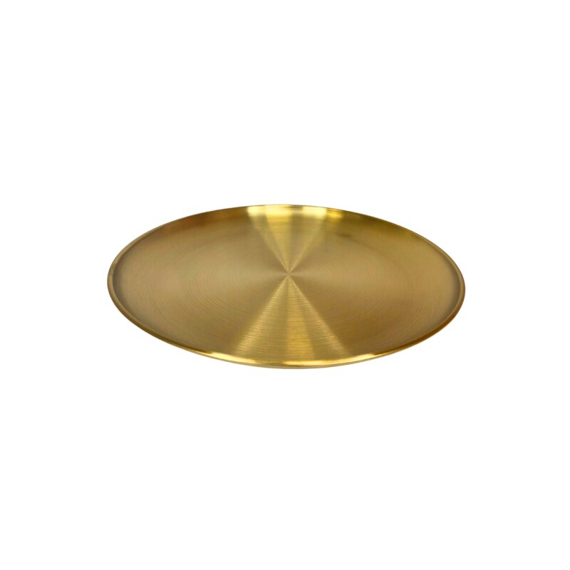 Stilinga ir universali auksinės spalvos metalinė lėkštė – puikus pasirinkimas tiek kasdieniam naudojimui, tiek šventiniam serviravimui. Dėl minimalistinio dizaino ir prabangaus paviršiaus ši lėkštė lengvai dera prie įvairių interjero ir stalo dekoro stilių.