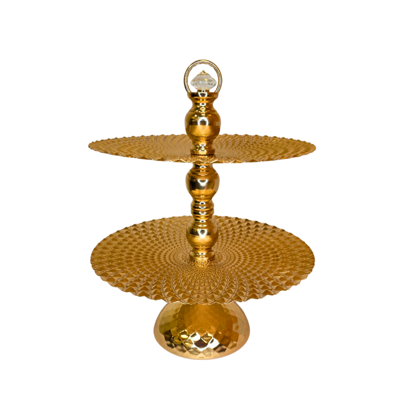 Dviejų aukštų auksinė serviravimo lėkštė su dekoratyviniu kristalu