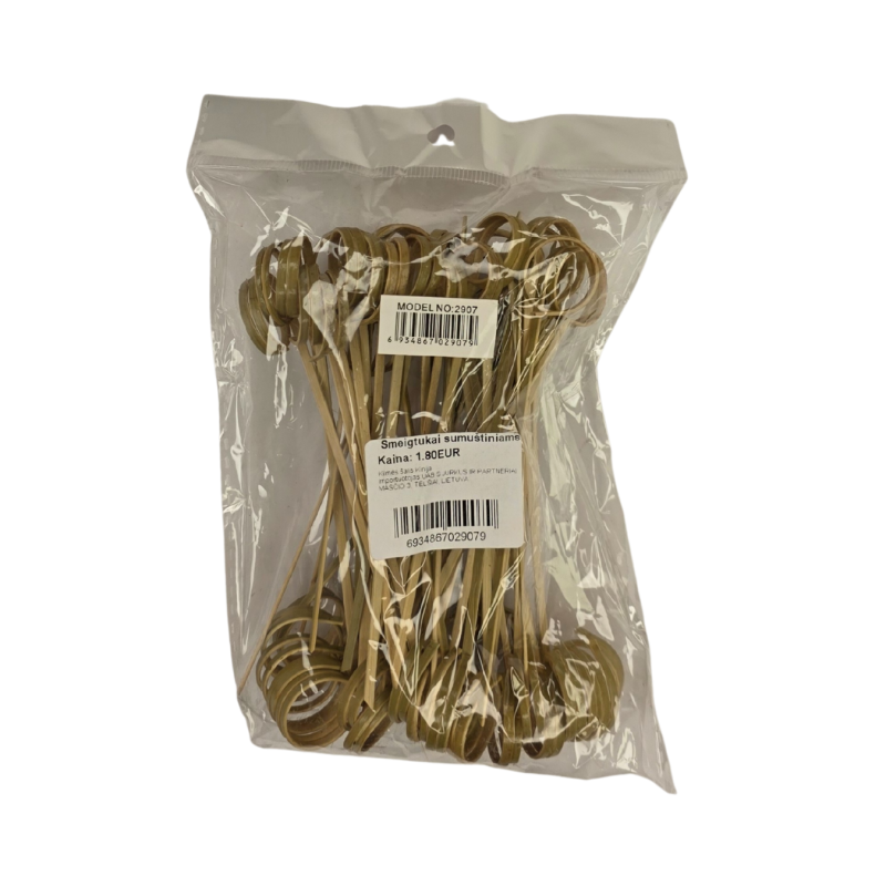Natūralūs mediniai smeigtukai – puikus pasirinkimas sumuštiniams, užkandžiams, vaisiams ar desertams pateikti. Dėl dekoratyvinio kilpos formos galo jie atrodo estetiškai ir tinka šventiniam stalui ar maisto serviravimui renginiuose. Lengvi, tvirti ir pagaminti iš ekologiškos medienos, šie smeigtukai yra saugūs sąlyčiui su maistu.