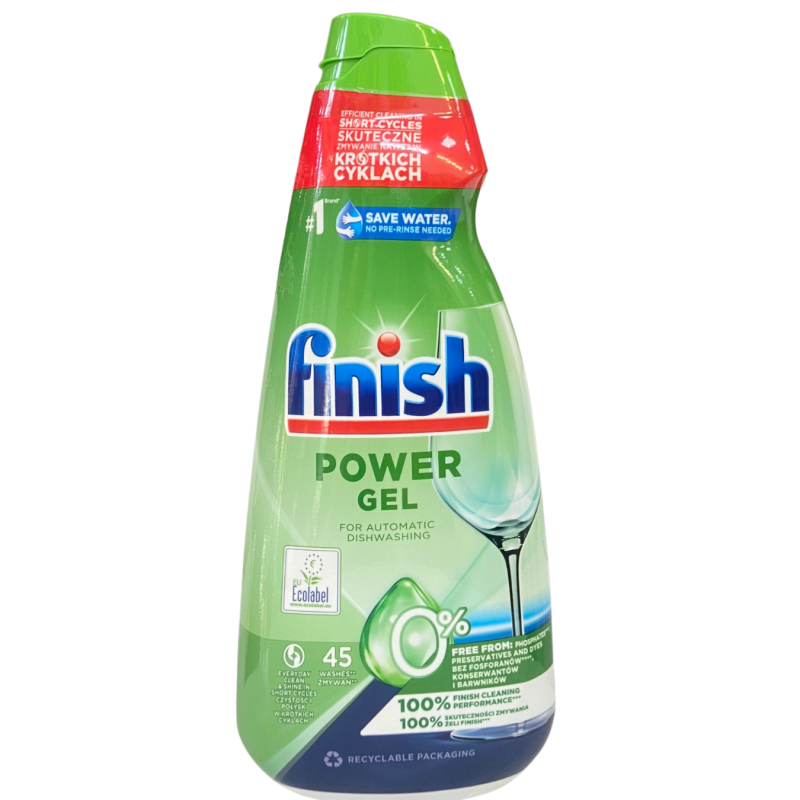 „Finish Power Gel“ – efektyvus indaplovių plovimo gelis, skirtas kasdieniam indų plovimui. Greitai tirpsta ir užtikrina puikius plovimo rezultatus net trumpose plovimo programose. Padeda pašalinti riebalus ir nešvarumus, suteikia indams švarą bei blizgesį..