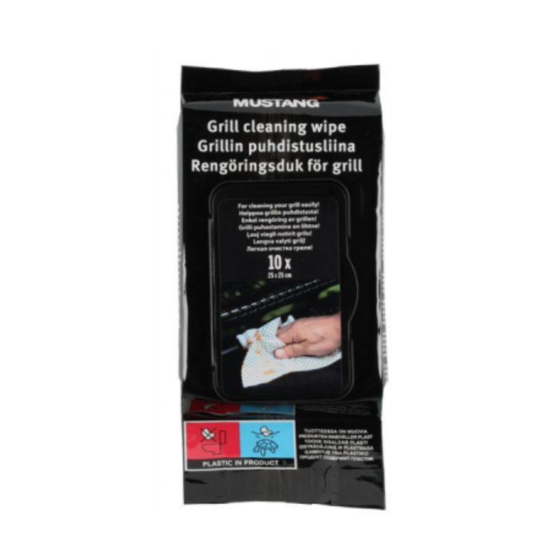 Praktiškos ir patogios „Mustang“ grilio valymo servetėlės, skirtos greitam ir efektyviam grilio, grotelių bei kitų paviršių valymui. Servetėlės yra impregnuotos valymo priemone, kuri padeda lengvai pašalinti riebalus, maisto likučius ir nešvarumus be didelių pastangų. Puikiai tinka naudoti po kepimo ar prieš naują grilio sezoną.