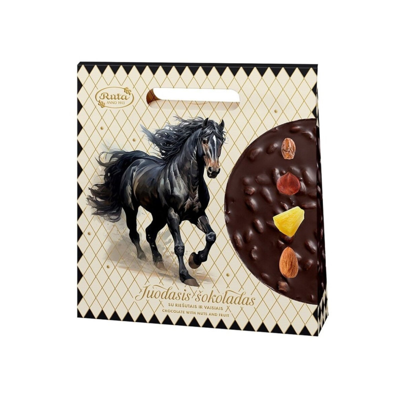 Gamintojas: Kilmės šalis: Lietuva Grynasis kiekis: 100g Juodasis šokoladas RŪTA su spanguolėmis
