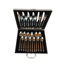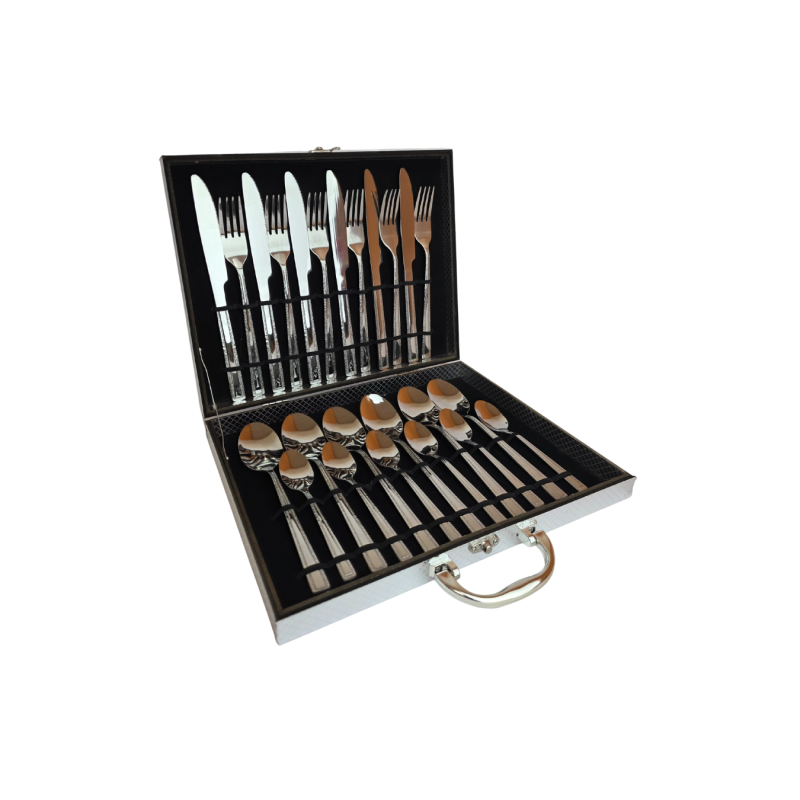 Elegantiškas 24 dalių stalo įrankių rinkinys patogiame lagamine. Pagaminti iš nerūdijančio plieno, todėl yra ilgaamžiai, lengvai valomi ir tinkami naudoti kasdien. Stilingas dizainas suteikia prabangos pojūtį ir puikiai tinka dovanai ar kasdieniam naudojimui.
