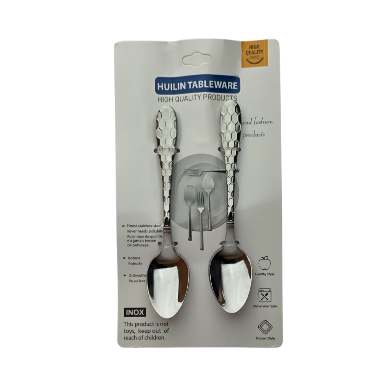 Aukštos kokybės nerūdijančio plieno šaukštų rinkinys „Huilin Tableware“ pasižymi išskirtiniu, korio rašto dizainu, suteikiančiu modernumo ir elegancijos. Šaukštai yra patogūs, tinkamo svorio ir subalansuotos formos, todėl maloniai guli rankoje. Pagaminti iš tvirto plieno, atsparūs rūdijimui bei lengvai valomi. Puikiai tinka kasdieniam naudojimui ar stalo serviravimui šventėse.