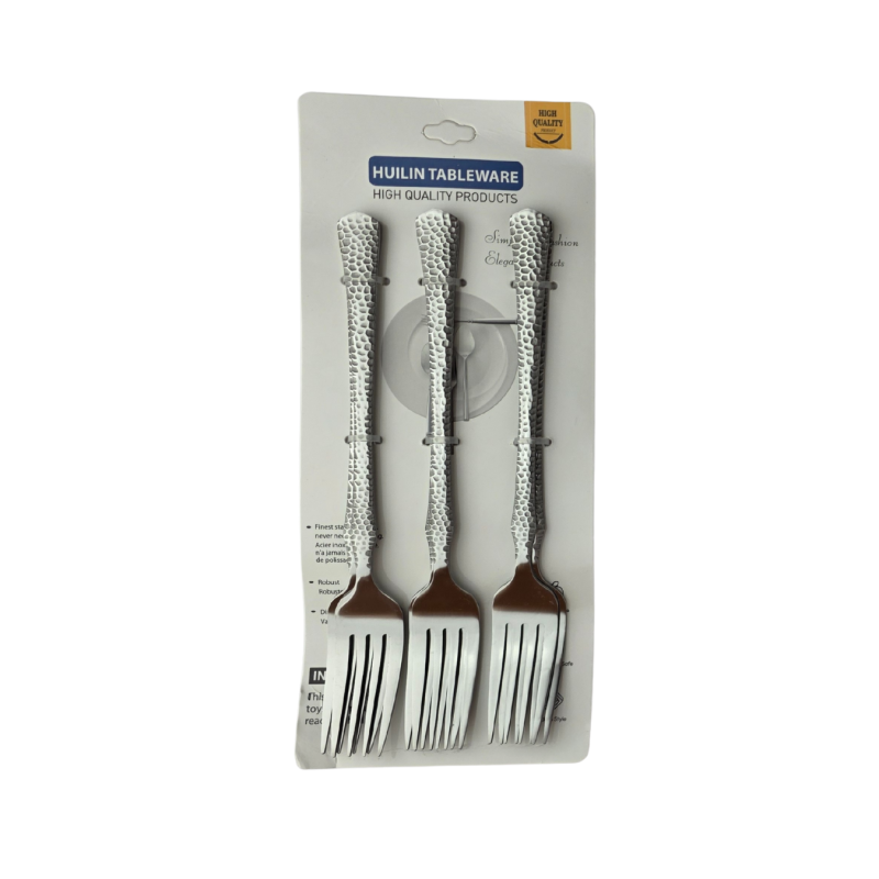 Aukštos kokybės nerūdijančio plieno šakučių rinkinys „Huilin Tableware“ su išskirtiniu, plaktos tekstūros dizainu. Šakutės ne tik atrodo elegantiškai, bet ir yra tvirtos, patogios laikyti bei atsparios rūdijimui. Puikiai tinka kasdieniam naudojimui ar šventiniam stalui. Lengvai prižiūrimos ir tinkamos plauti indaplovėje.