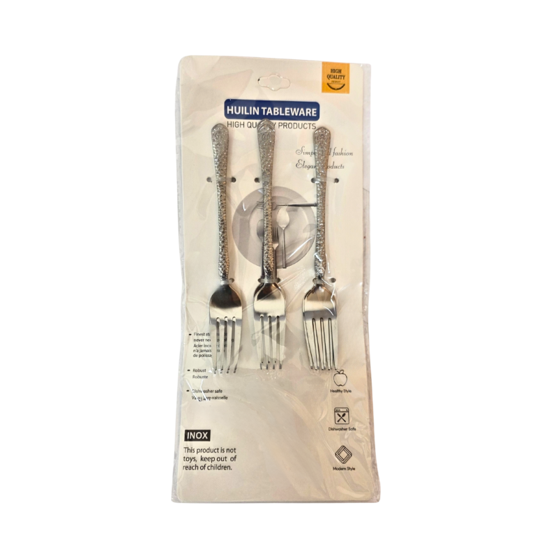 Šis elegantiškas trijų šakučių rinkinys pagamintas iš aukštos kokybės nerūdijančio plieno, kuris pasižymi tvirtumu, ilgaamžiškumu ir atsparumu korozijai. Reljefiniai, dekoratyviai išgraviruoti kotai suteikia stalo įrankiams išskirtinio žavesio ir patogumo laikant. Rinkinys puikiai tinka kasdieniam naudojimui arba šventiniam stalo serviravimui.