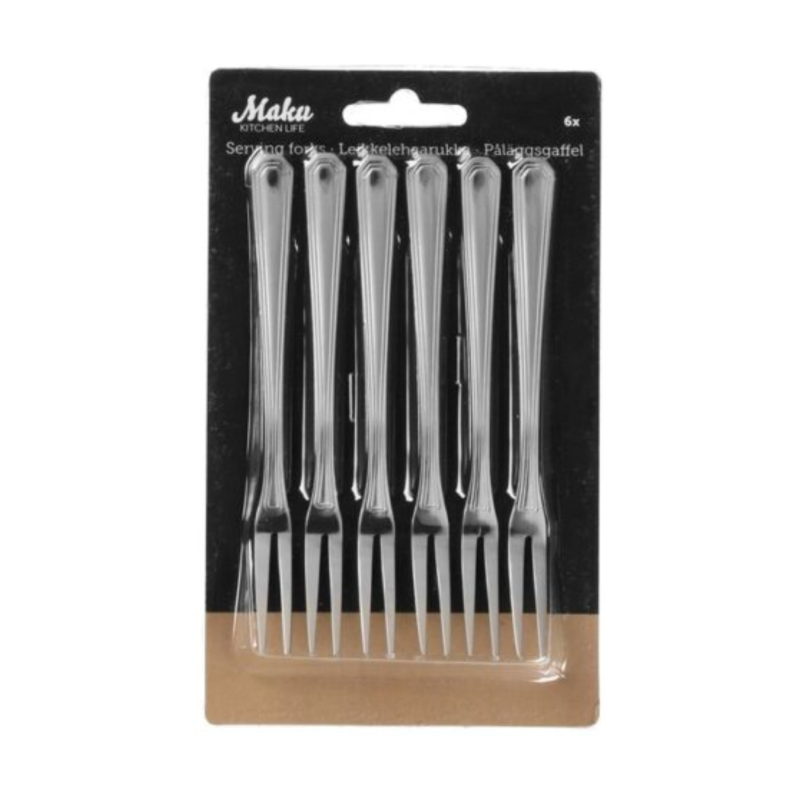 Elegantiškos ir praktiškos šakutės, skirtos patogiam plonų griežinėlių patiekimui ir valgymui. Puikiai tinka sūriui, kumpiui, žuviai, vaisiams ar kitiems smulkiai pjaustytiems užkandžiams. Plonas, dailus dizainas suteikia stalui estetišką išvaizdą ir užtikrina patogų naudojimą.