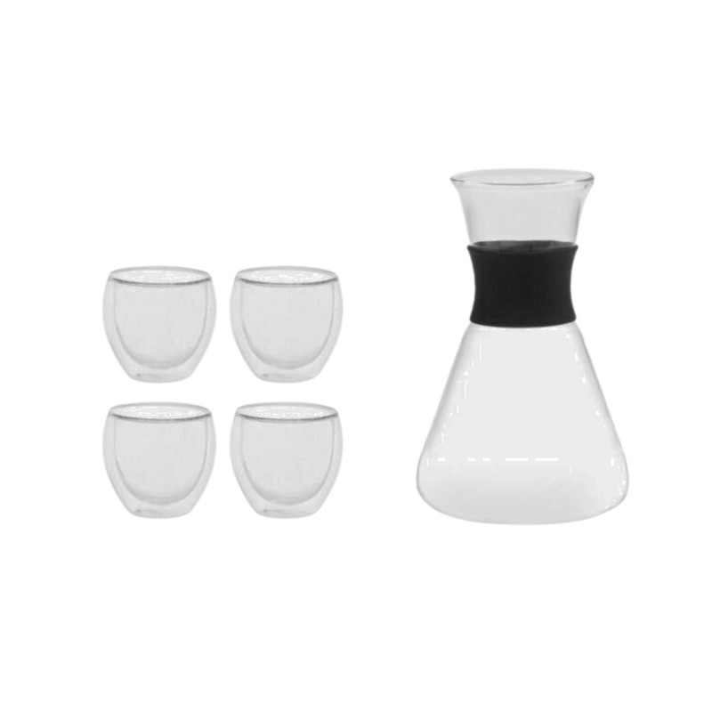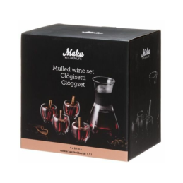 Elegantiškas ir funkcionalus karšto vyno rinkinys, skirtas jaukiems vakarams ir šventinėms progoms. Rinkinį sudaro stilinga stiklinė karafa bei keturios dvigubų sienelių stiklinės, kurios puikiai išlaiko gėrimo temperatūrą ir apsaugo rankas nuo karščio. Skaidrus, modernus dizainas leidžia grožėtis karšto vyno spalva ir prieskoniais, o juodas silikoninis karafos apvadas užtikrina patogų ir saugų laikymą. Rinkinys supakuotas dailioje dėžutėje, todėl puikiai tinka ir kaip dovana.