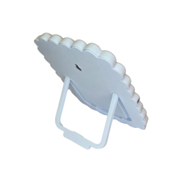 Elegantiškas ir praktiškas stalinis veidrodis su bangelėmis dekoruotu rėmeliu. Turi patogų stovą, todėl galima lengvai pastatyti ant stalo, komodos ar kosmetinio stalelio. Taip pat yra skylutė tvirtinimui prie sienos, jei norisi pakabinti.