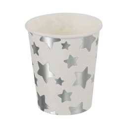 Popieriniai puodeliai su blizgiu raštu, 10 vnt (vienos spalvos / dizaino pakuotė)