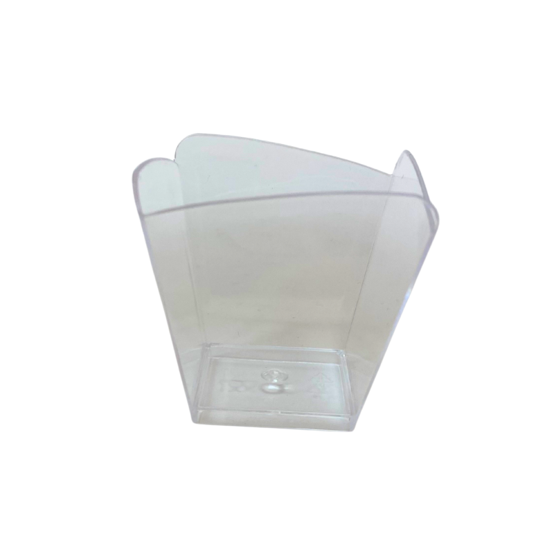 Skaidrūs, elegantiškos formos vienkartiniai indeliai puikiai tinka desertams, užkandžiams, sluoksniuotiems skanėstams ar degustacijoms. Patogūs naudoti ir estetiškai atrodo ant šventinio stalo.