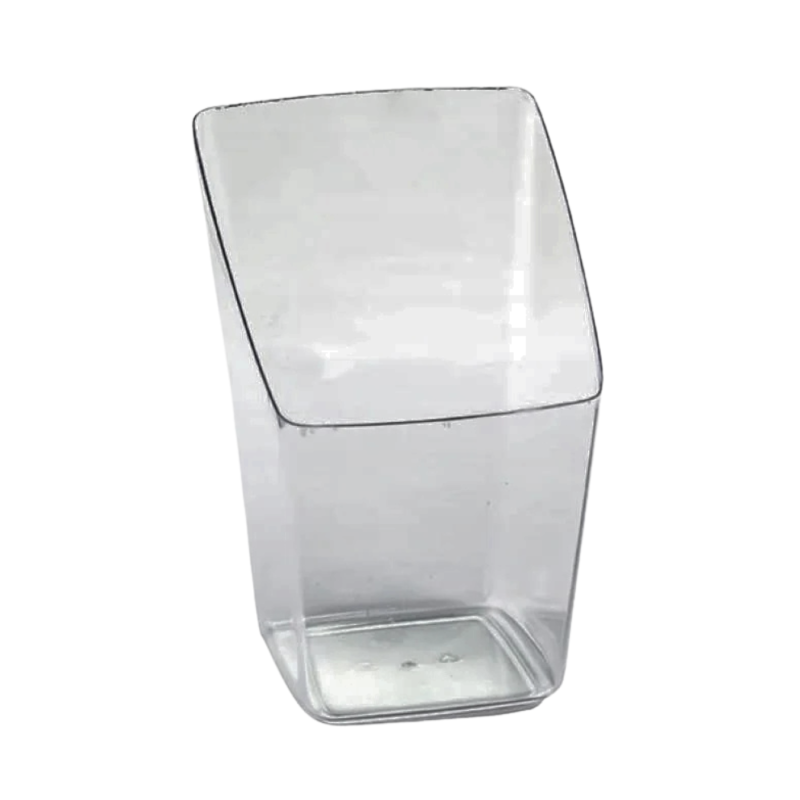 Skaidrūs, modernios įstrižos formos indeliai desertams – puikus pasirinkimas šventėms, furšetams, degustacijoms ar individualioms porcijoms patiekti. Patogūs, estetiški ir vienkartiniai.