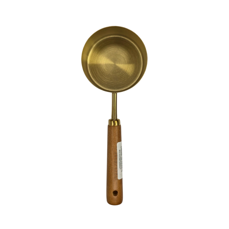 Stilingas ir praktiškas samtelis, pagamintas iš aukso spalvos metalo ir papildytas patogia natūralaus medžio rankena. Puikiai tinka birių produktų – kavos, arbatos, cukraus, prieskonių, kruopų – dozavimui. Dėl tvirto metalo jis ilgaamžis, o ergonomiška rankena užtikrina patogų laikymą bei naudojimą. Elegantiškas dizainas puikiai dera tiek modernioje, tiek klasikinėje virtuvėje.