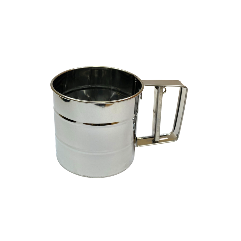 Praktiškas ir patogus metalinis miltų sijotuvėlis, skirtas greitam ir tolygiam miltų, kakavos ar cukraus pudros sijojimui. Klasikinė puodelio forma su rankena leidžia lengvai laikyti ir naudoti viena ranka, todėl maisto ruošimas tampa paprastesnis ir patogesnis.