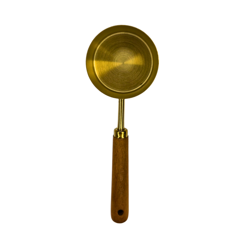 Tvirtas ir patogus 80 ml talpos matavimo šaukštas puikiai tinka įvairiems produktams dozuoti: kavai, arbatai, miltams, kruopoms, prieskoniams ar skysčiams. Auksinės spalvos metalinė galvutė užtikrina ilgaamžiškumą, o natūralaus medžio rankena suteikia patogų ir stabilų suėmimą. Tai funkcionalus ir stilingas virtuvės aksesuaras tiek kasdieniam, tiek tiksliam matavimui.