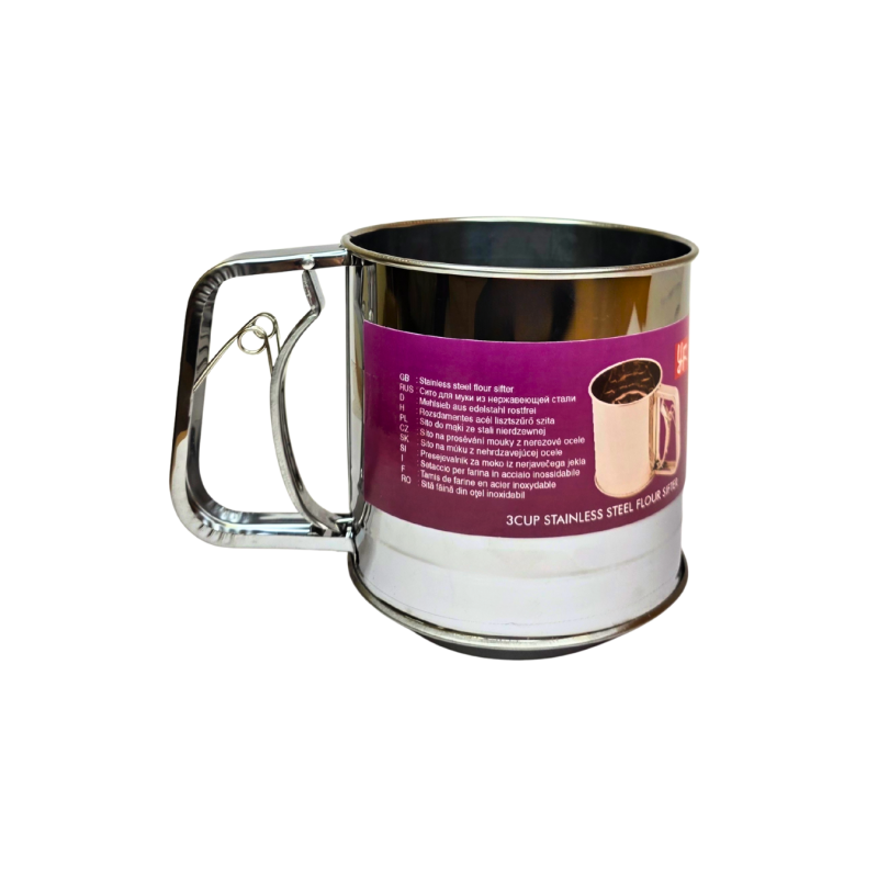 Patogus ir praktiškas miltų sietelis – būtinas įrankis kiekvienoje virtuvėje, ypač mėgstantiems kepti. Jis padeda greitai ir lengvai persijoti miltus, kakavą, cukraus pudrą ar kitus birius produktus, kad tešla būtų puri, vientisa ir be gumulėlių.