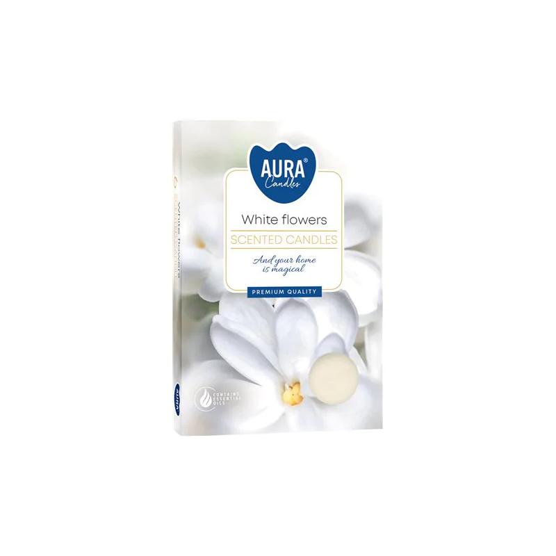 Kvapniųjų žvakučių rinkinys „Baltos gėlės“ (6 vnt.)