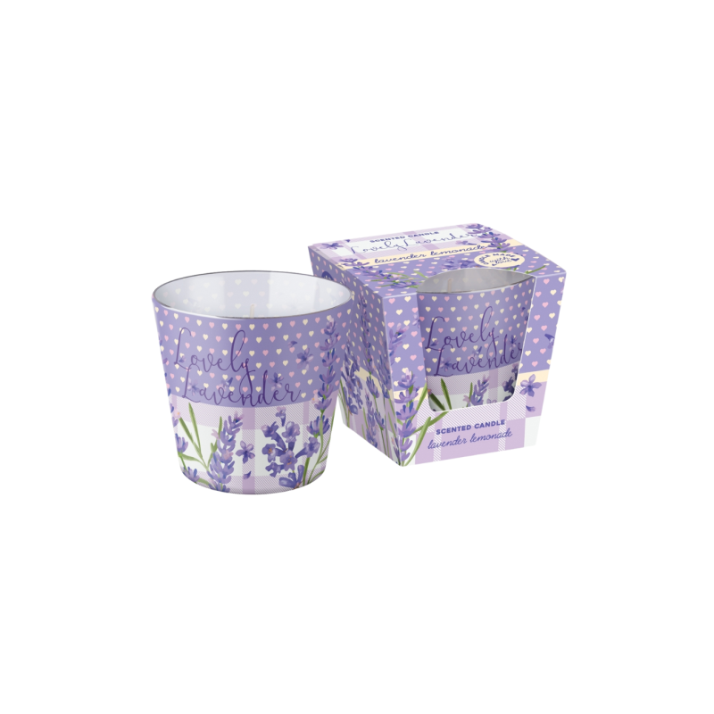 Stikliniame indelyje esanti aromatinė žvakė su gaiviu levandų ir citrininės limonados kvapu. Švelnus, vasariškas aromatas pripildys namus lengvumo ir jaukumo, o dekoratyvus levandų dizaino indelis taps puikiu interjero akcentu.