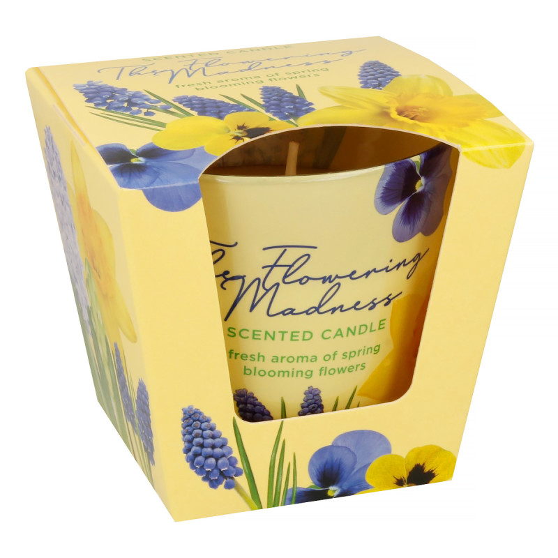 Gaiviai ir švelniai kvepianti žvakė, pripildyta pavasarį primenančio žydinčių gėlių aromato. Supakuota dekoratyvioje dovaninėje dėžutėje su ryškiais žiedų motyvais – puikus pasirinkimas namų jaukumui sukurti arba dovanai.